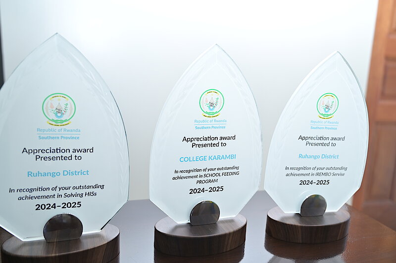 Akarere ka Ruhango kashimiwe kwitwara neza mu Ntara y'Amajyepfo mu kwita no gukemura ibibazo bibangamiye imibereho myiza y'abaturage "HSIs", gutanga serivisi z'ikoranabuhanga binyuze mu "Irembo", kwita no kugaburira abanyeshuri indyo yuzuye "School feeding".