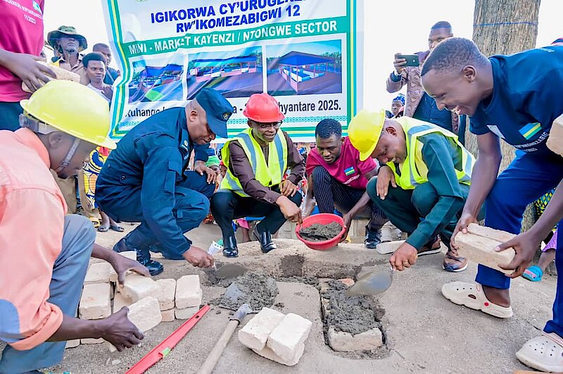 Intore zo ku rugerero rw’Inkomezabigwi icyiciro cya 12 mu Ruhango na Mirenge itandukanye mu Karere zahize kubaka ibikorwa remezo bitandukanye, birimo isoko ku baturage bo mu Murenge wa Ntongwe mu Kagari ka Kayenzi, mu rwego rwo gukemura ibibazo byugarije imibereho y’abaturage.