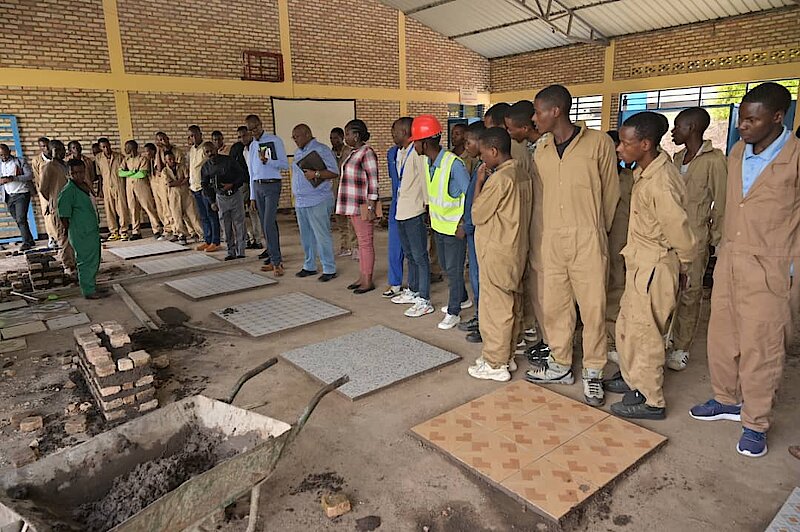 Itsinda ry'abasenateri bagize Komisiyo y'Imibereho y'Abaturage n'Uburenganzira bwa Muntu: Hon. Cyitatire Sosthene na Hon. Prof. Dusingizemungu Jean Pierre bari kumwe n'Umuyobozi w'Akarere Wungirije ushinzwe Imibereho myiza y’Abaturage Madame MUKANGENZI Alphonsine basuye ibigo byigisha Ubumenyi ngiro birimo Ntongwe TSS (Ntongwe sector) na Gitisi TSS (Ruhango sector).