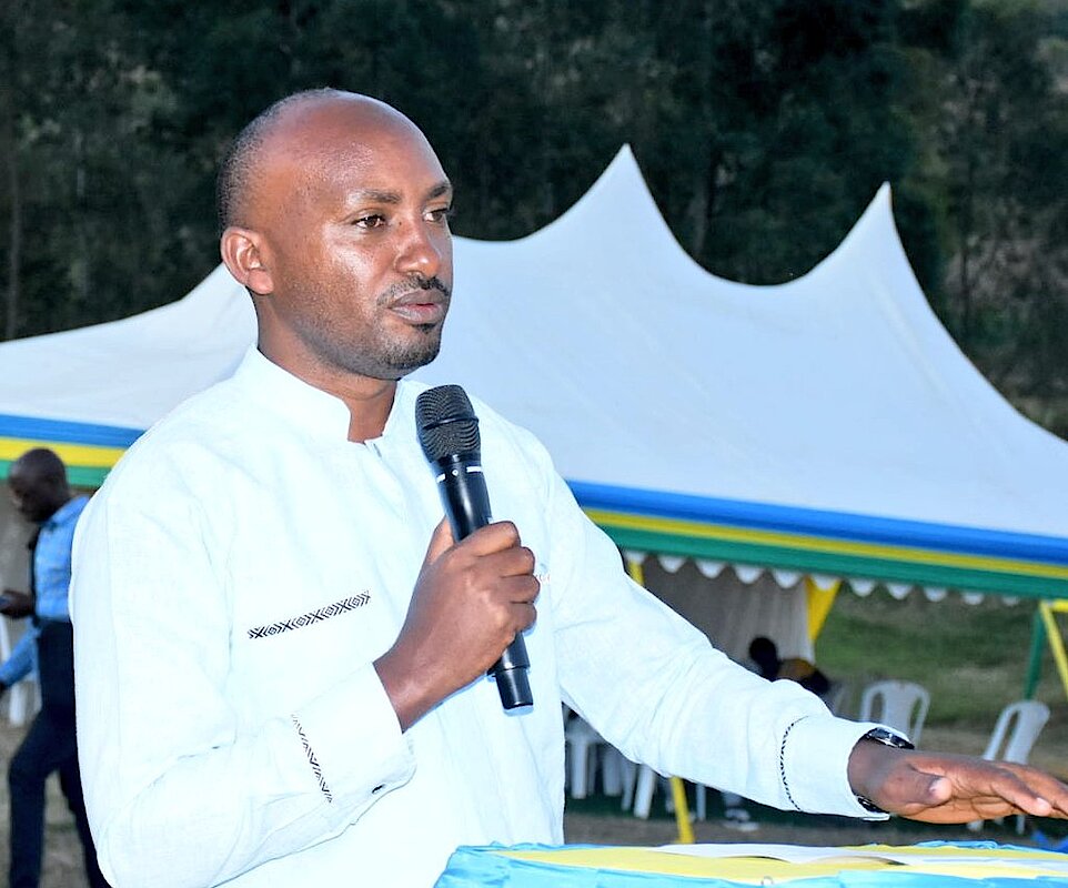 Umuyobozi w'Akarere wungirije ushinzwe Iterambere ry'Ubukungu, Rusiribana Jean Marie Vianney arasaba Abafatanyabikorwa mu iterambere ry'Akarere (DJAF OPEN DAY) gukomeza gukorana hagati yabo bagaharanira iterambere ry'umuturage kuko ariwe mbaraga z'Igihugu.