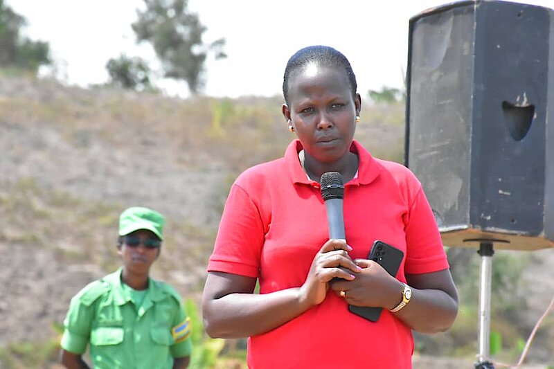 Ubutumwa Umuyobozi w'Akarere Wungirije Ushinzwe imibereho myiza y'abaturage yagejeje ku baturage bwibanze ku nsanganyamatsiko y'umuganda w’uyu munsi. Yabanje kugaragaza zimwe mu ngero z'uburyo ibikorwa bya buri munsi bya Muntu byangiza ibidukikije harimo gutema ibiti bikenerwa mu mirimo n'ubuzima bwa buri munsi, ubucukuzi bw'amabuye y'agaciro, amabuye n'imicanga yo kubaka, .... maze asaba ko imbaraga z'urubyiruko zaganishwa kurengera ibidukikije byangizwa muri ubwo buryo.