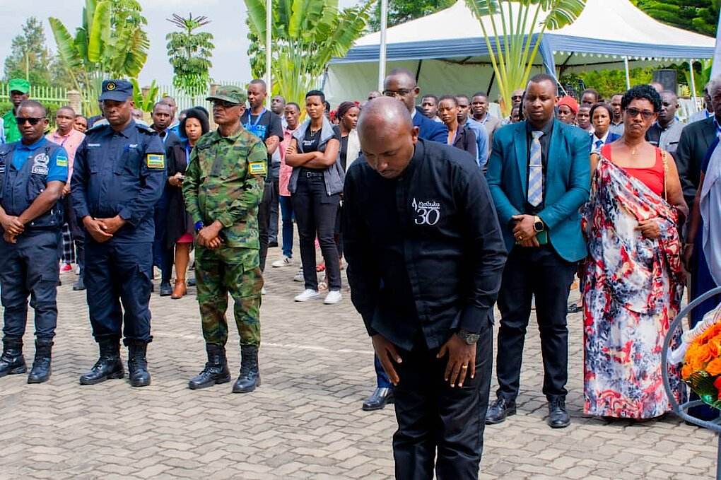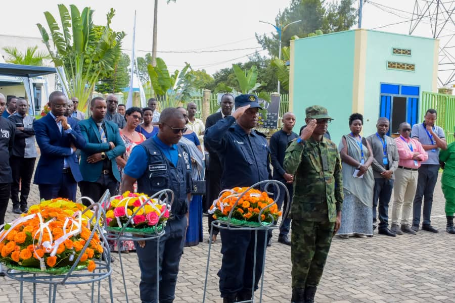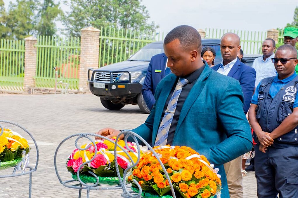 Iki gikorwa cyasojwe hashyirwa indabo ku kimenyetso cya Jenoside yakorewe abatutsi cyanditseho amazi atandukanye y'abari abakozi b'amakomini yahujwe akavamo akarere ka Ruhango.