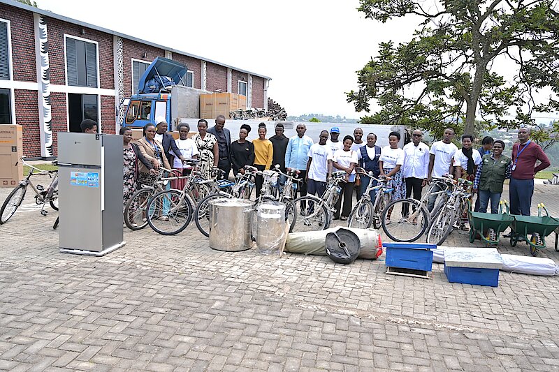 ibikoresho bahawe birimo amagare, ingorofani, frigo, ibyima byifashishwa mu kongera umusaruro w'ubuvumvu, imashini zifashishwa mu guhakura ubuki, etc.